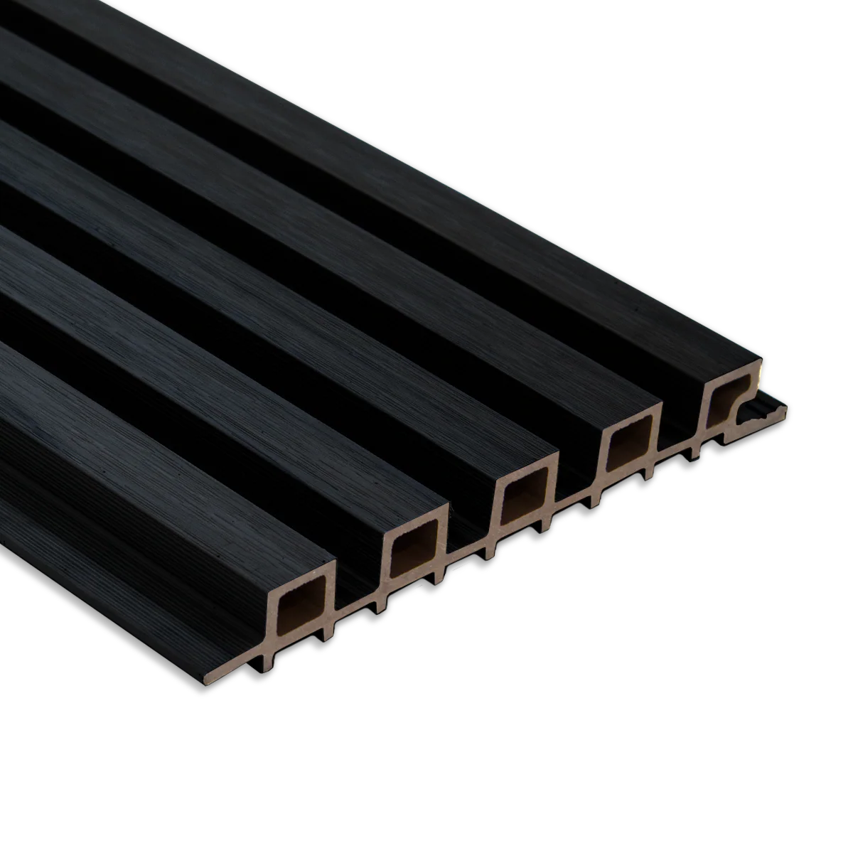 Bring striking contrast and contemporary depth to your outdoor space with our black exterior slat wall panel. Designed for durability and impact, this panel features a high-performance UV-protected finish with deep black woodgrain texture. Its clean vertical lines and robust construction make it the ideal choice for garden rooms, home exteriors, commercial facades and modern outdoor features.